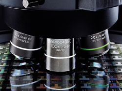 在深紫外線到可視、近紅外線觀察中發(fā)揮高性能的UIS2物鏡系列產(chǎn)品,與各種觀察單元組合,可以在一臺(tái)顯微鏡上進(jìn)行明視場(chǎng)、暗視場(chǎng)、微分干涉、熒光、近紅外線、深紫外線等觀察。