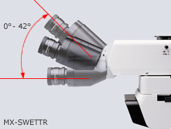 備有2種能以舒適姿勢(shì)觀察的傾斜鏡筒。可以根據(jù)用途選擇雙目部?jī)A斜角度由水平0°到42°的、變化范圍大的MX-SWETTR型號(hào),或是目視和拍攝影像可同時(shí)觀察的U-SWETTR-5型號(hào)。